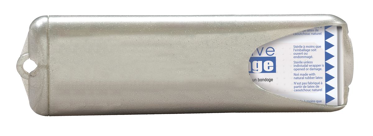 The Nuvo Bandage Dispenser comes in trendy metallic or translucent colors and conveniently holds 5 clear bandages. It's great for traveling or to keep in your daily bag for those unexpected boo-boos.
